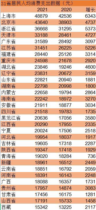 看完最能“赚钱”榜单,再看最能“花钱”榜单。据了解,随着居民收入持续恢复性增长,居民消费需求逐步释放,消费支出保持恢复性反弹态势。