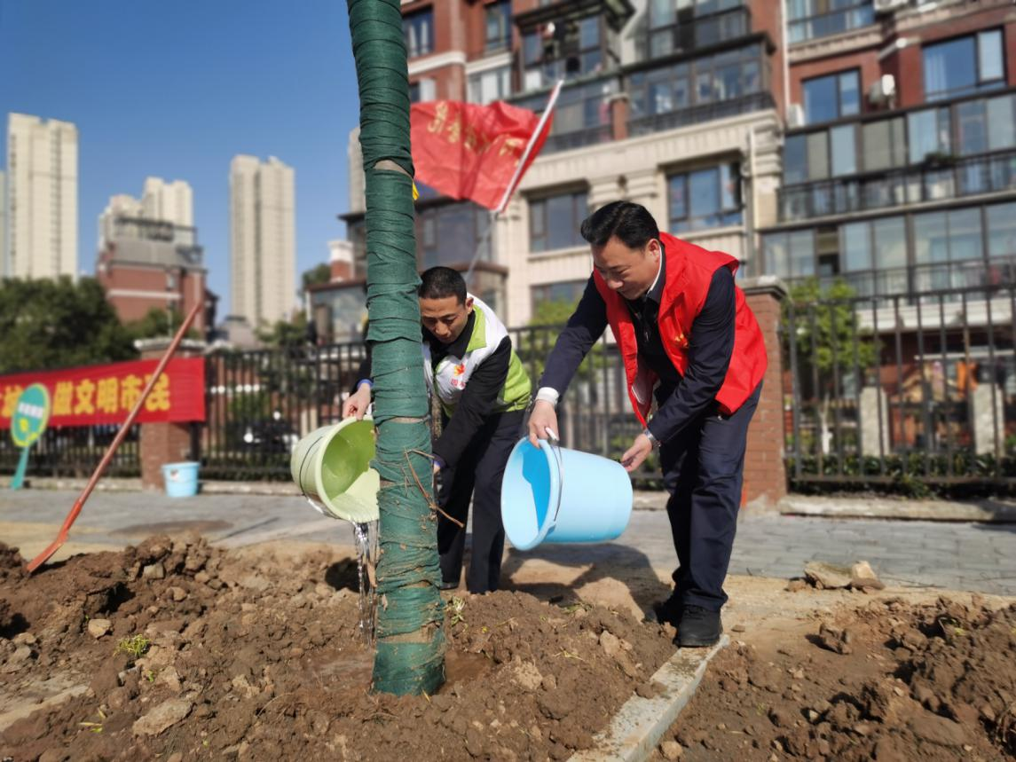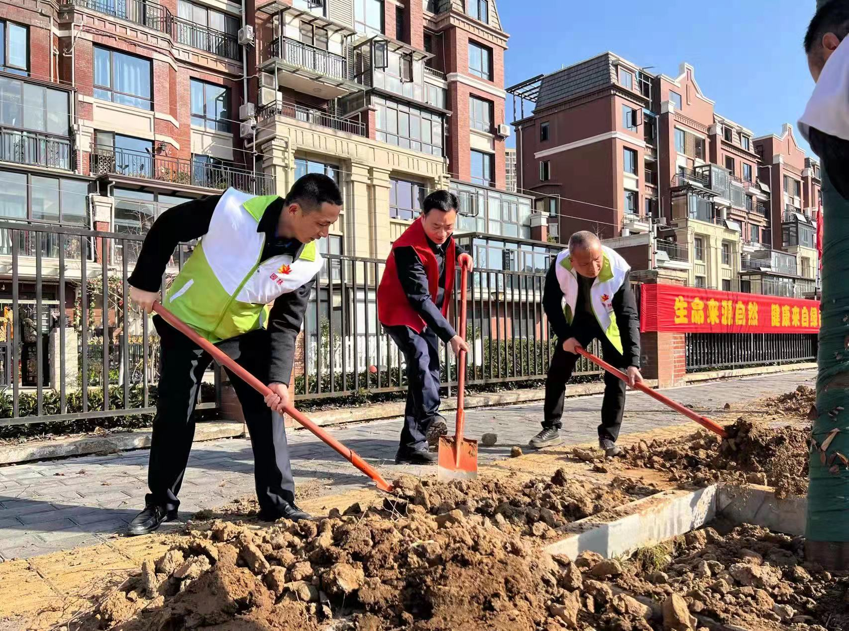 植树现场,热闹非凡。各单位干部职工分工协作,挥锹铲土,培土浇水,栽得认真,干得卖力,整个植树活动现场一片热火朝天的劳动景象。大家一边植树,一边了解今年种植的树木品种、生长周期,树木成活等情况。在整个植树过程中,大家充分享受着植树活动带来的乐趣。经过一上午的努力,共栽植榉树120棵,活动取得圆满的成功。