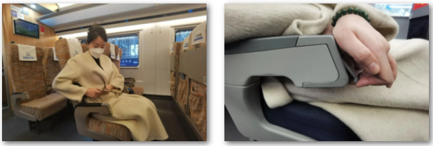 在座椅扶手上有列车畅行码