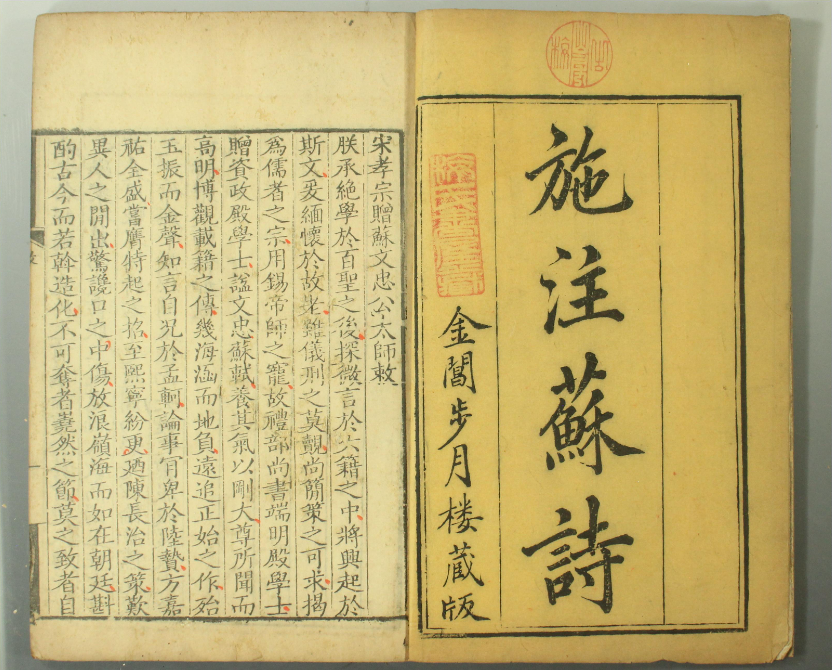 凝视清康熙三十八年(1699年)金阊步月楼刊印的《施注苏诗》,是一种什么感觉?这本册子,纸面微黄,版式方正雅致,字体端庄清秀,300年前句读的朱红还是那么好看。