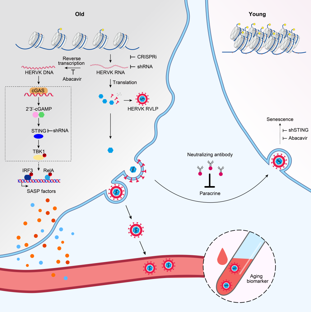 我国科学家首次揭示了人类基因组序列中的内源性古病毒“复活”驱动衰老的机制,有望为衰老的科学评估,以及相关疾病的防治提供重要研究思路。