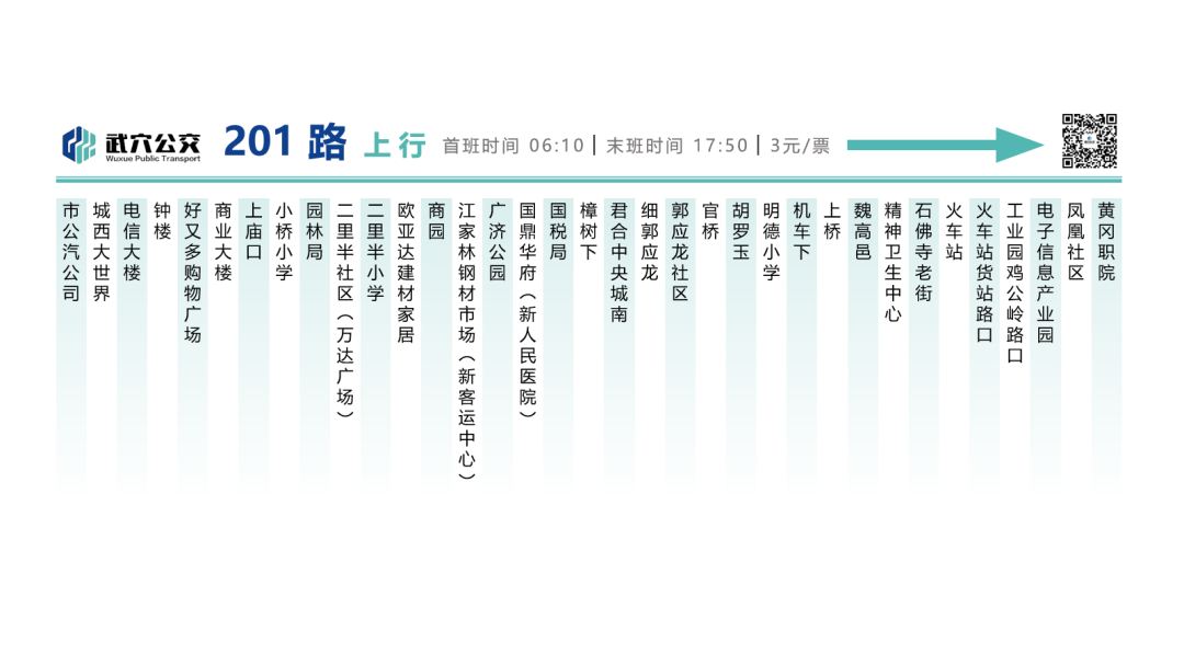 为更好地服务民众出行,扩大线路覆盖范围,武穴公交将对201线路进行局部优化,并延伸终点至黄冈职院,该调整于2024年9月4日起执行。具体调整如下:1、上行不再停靠:老人民医院,梅松高;新增停靠站点:园林局,二里半社区(万达广场),二里半小学。2、下行不再停靠:梅松高、老人民医院,百汇大厦,刘家巷,民主路老车站,老市委公园;新增停靠站点:二里半小学,万居乐建材城,园林局,小桥路口。3、终点延伸至黄冈职院武穴分院。
