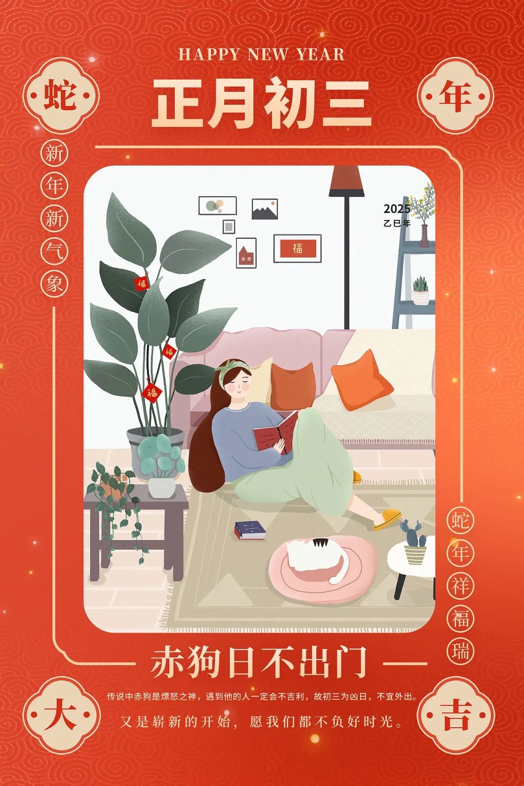 大年初三是赤狗日,还被称为“恶鬼日”,忌探亲访友。相传赤狗脾气颇为火爆,不太好说话,民间多认为正月初三极易与人发生口角争执,为了避免大过年的闹得不愉快,忌探亲访友,因此在正月初三这天,人们不外出走动,多会留在家中,也希望新年能够有个好的开端。
