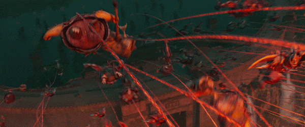 之所以“刹不住车”,是因为他们一直在跳起来够中国动画电影特效的天花板。铁锁链镜头是电影的重头戏之一,成千上万的妖族被困在海底炼狱,每个人身上都缠一条锁链,交战时锁链随之甩动,不仅要乱中有序,还要具有摇曳的美感。