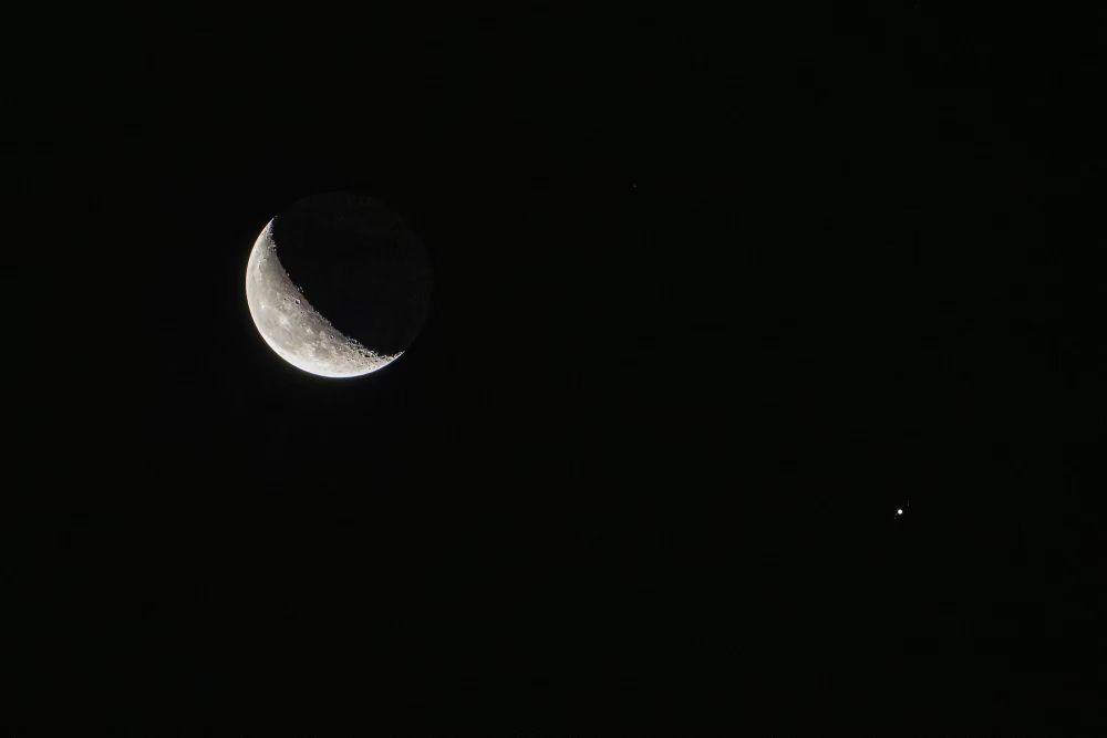 如何更好地观赏这幕“星月童话”?“如果天气晴好,只需面向西北方向,寻找一个视野开阔之地,微微抬头即可看到。有条件的公众如果使用双筒望远镜或小型天文望远镜观测,可以更清楚地看到木星的一些细节,比如它的条纹状云带、四颗伽利略卫星等。木星和新月的地平高度虽然都很低,但结合特色地景可以拍出创意照片。观赏之余,喜欢摄影的朋友可以用手机或相机拍摄下这幕美景,留作纪念。”杨婧说。