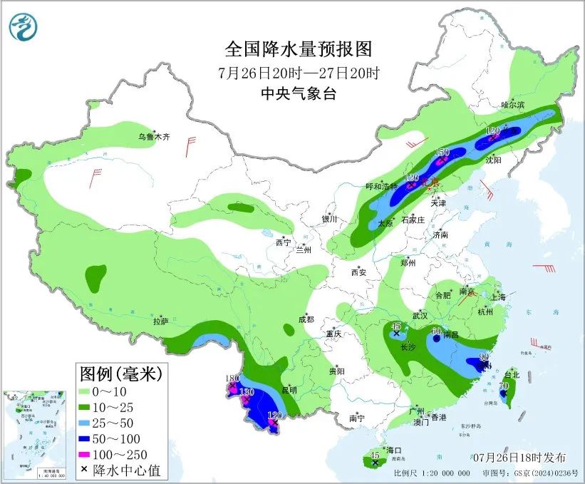 中央气象台26日18时继续发布暴雨黄色预警,预计26日20时至27日20时,内蒙古中东部偏南地区、陕西北部、山西北部、河北西部和北部、北京西部和北部山区、辽宁西北部、吉林中部、黑龙江东南部以及云南西部和南部、江西中北部、湖南北部、福建中北部、海南岛南部、台湾岛南部等地的部分地区有大到暴雨,其中,内蒙古东南部偏南地区、河北北部、吉林中部偏南地区、辽宁北部、云南南部和西部等地局地有大暴雨。