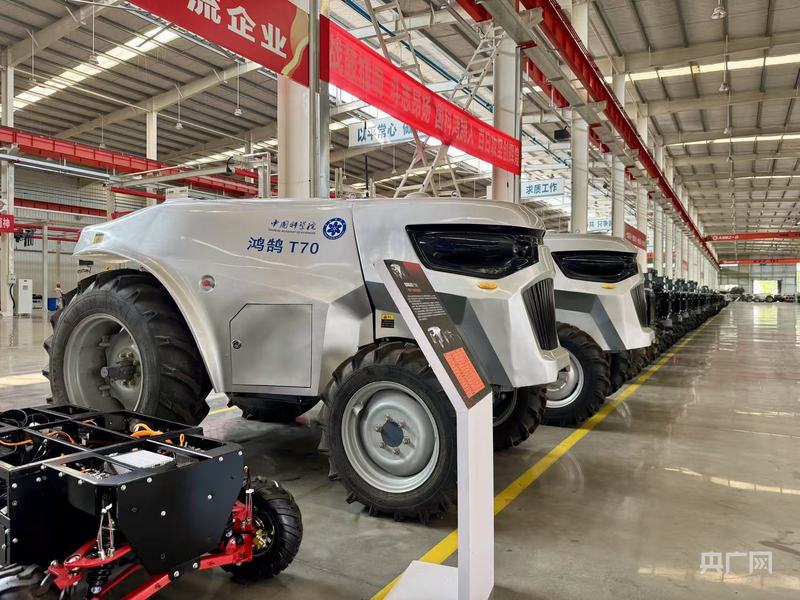 国科鸿鹄科技有限公司工厂内展示的鸿鹄T70智能农机(央广网记者赵玲 摄)