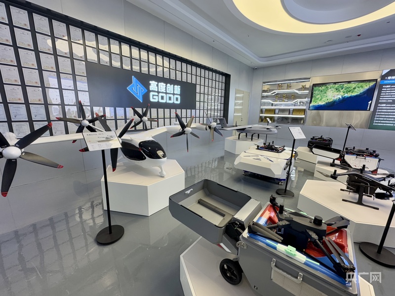 十堰市张湾区低空经济产业园内企业展出的无人机(央广网记者赵玲 摄)