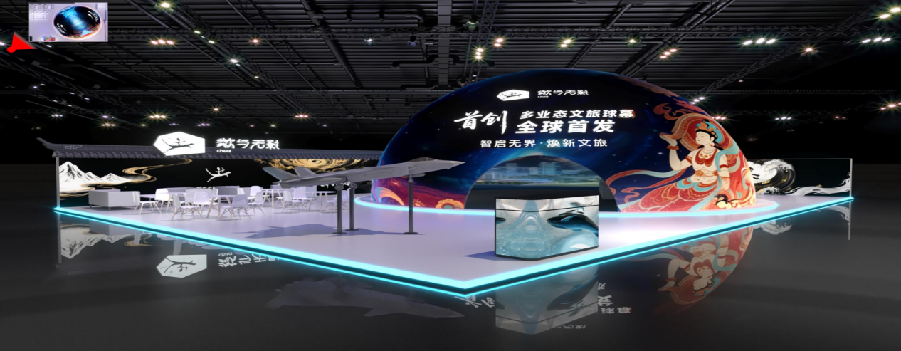 还有一系列首秀、首发,比如现场直径12米的巨大球幕,是全球首座“多业态文旅沉浸式球幕空间”,在本次博览会首次亮相。观众可以看到超清的火箭腾空、应县木塔修复、《哪吒闹海》等影像。