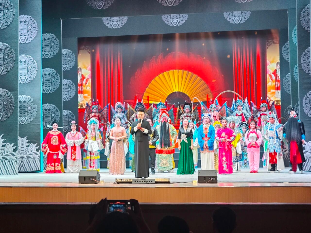 9月13日晚,在甘肃省定西市陇中许铁堂秦腔剧院,台上台下近400名演员、观众共同唱起脍炙人口的黄梅戏选段。