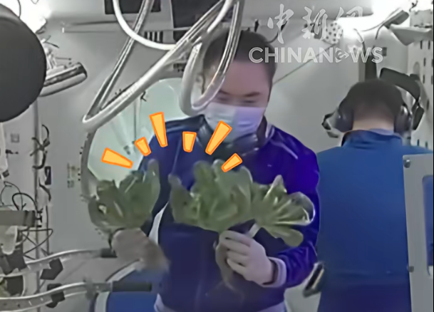 近日,中国空间站内随天舟九号上行的“升级版”太空菜园迎来丰收,航天员收获到茁壮成长的生菜后,开启了新一轮的栽培。