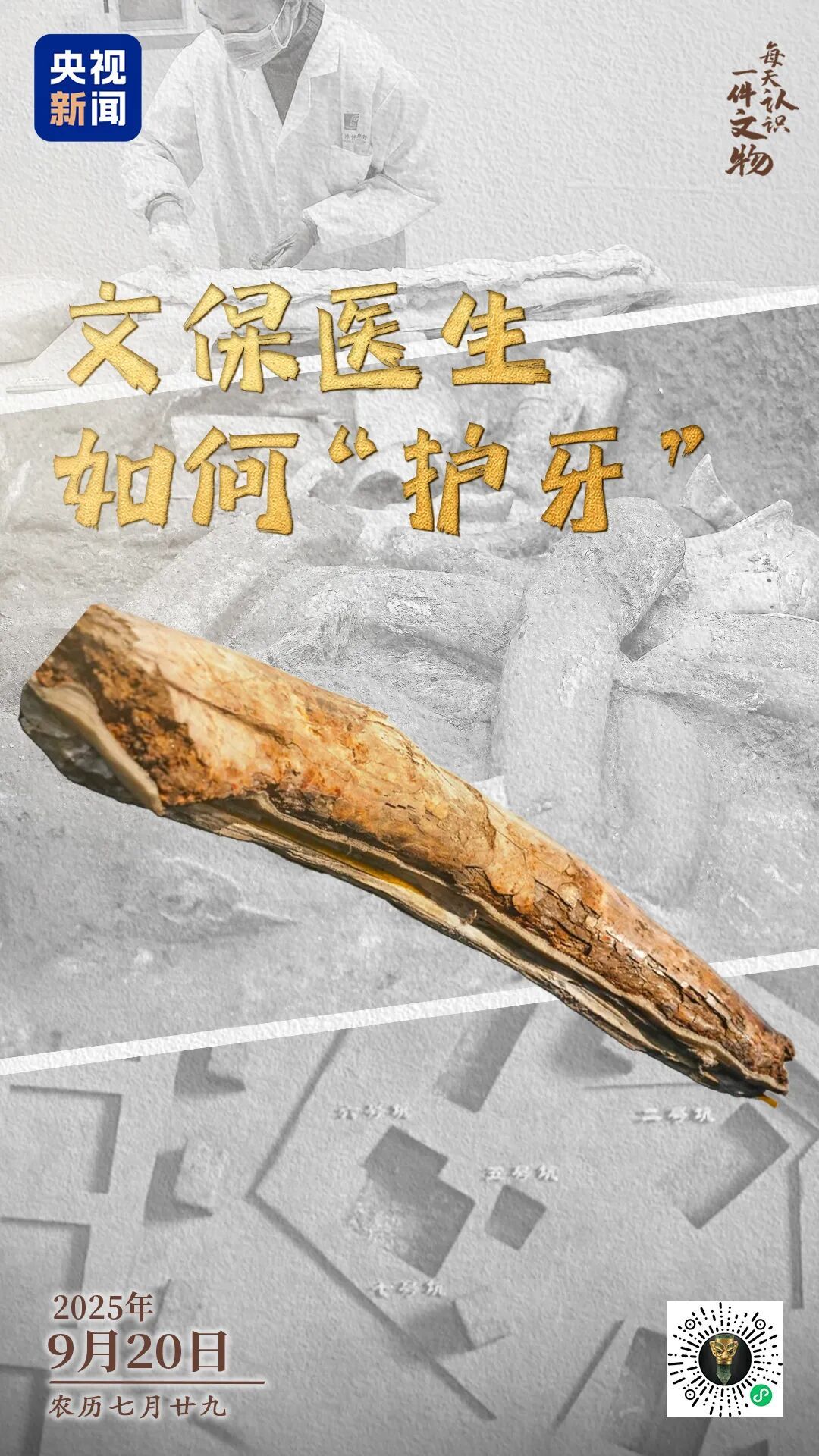 今天是国际爱牙日,三星堆 “牙科大夫” 如何护牙?刚出土的象牙由于长期受地下水侵蚀已变得非常 “酥软”,工作人员像“牙科大夫”一样为其 “刷牙”“洗牙”“抑菌”,并放入 “文物冰箱” 冷藏保存。为稳定展示,研究团队还成功实现整根象牙的脱水加固,为同类文物保护提供“中国方案”。