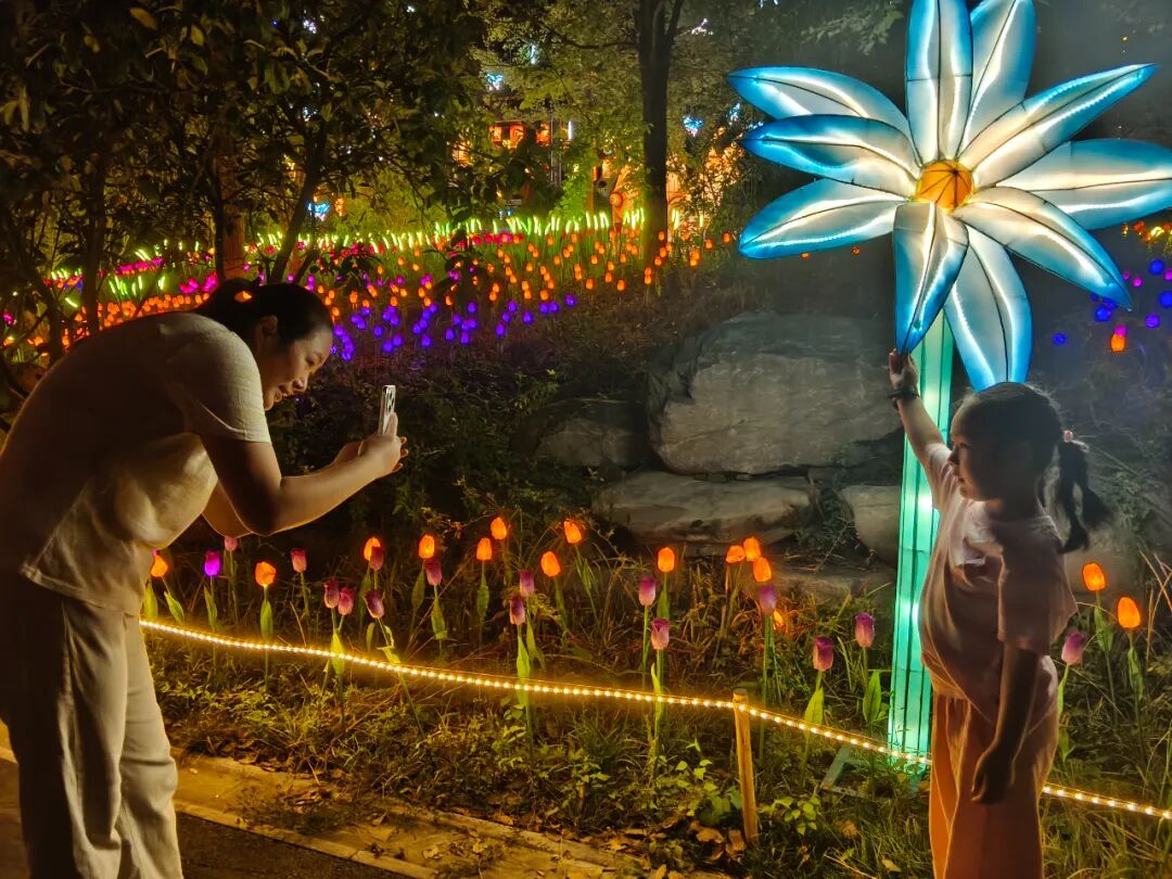 奇幻的灯光化作蝴蝶、瓢虫、萤火虫