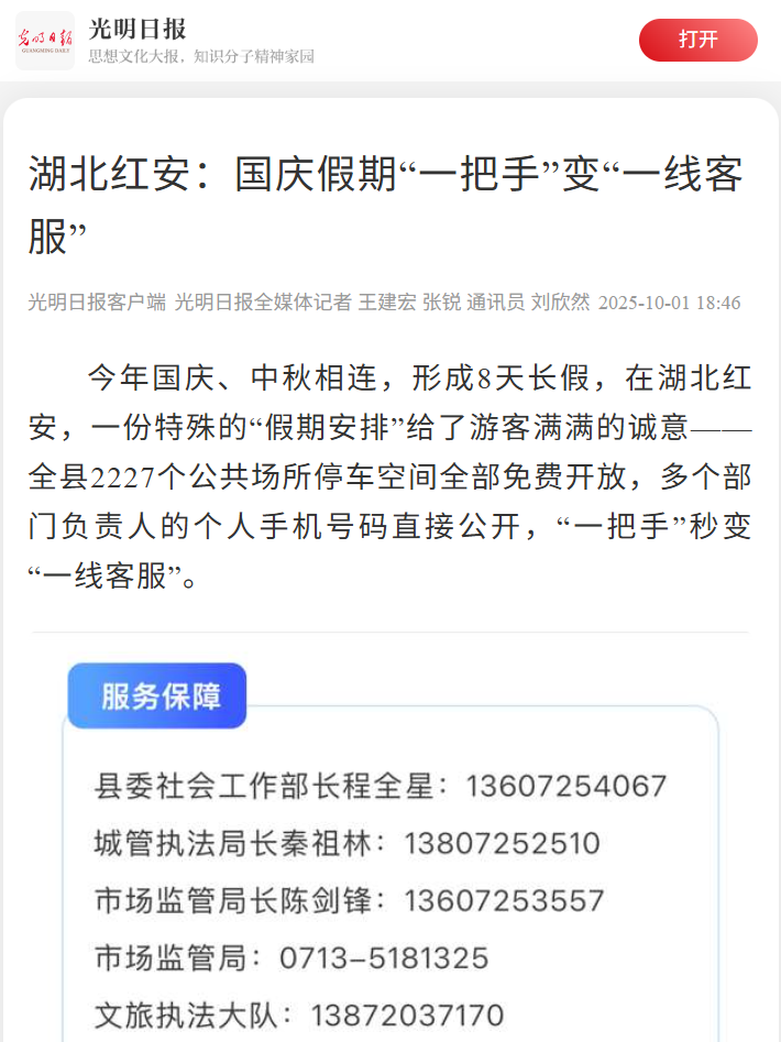 《湖北红安:国庆假期“一把手”变“一线客服”》
