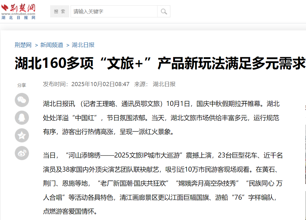 报道黄冈假日文旅盛况