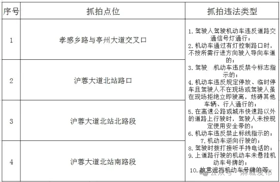 自11月1日起,麻城市公安局交通管理大队在麻城市部分路段启用交通技术监控设备,针对驾驶人驾驶机动车违反道路交通信号灯通行、违反禁令标志、违反禁止标线指示、逆向行驶、不按导向车道行驶等交通违法行为,实施定点抓拍并依法处罚。