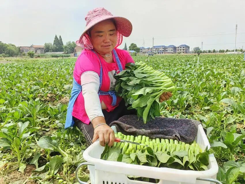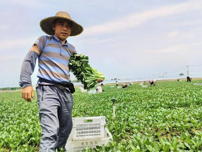 分路的秋天藏在广东菜心的黄绿褶皱里农户弯腰采收时 手起刀落间 那抹绿从田里悄悄挪进了丰收的筐里
