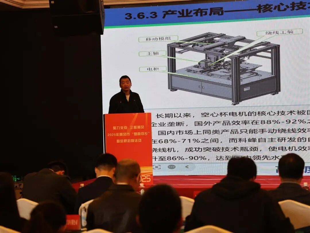 2025年黄冈市“楚商回乡”暨金秋招商推介活动装备制造产业专场,链主企业科峰传动代表正在路演。