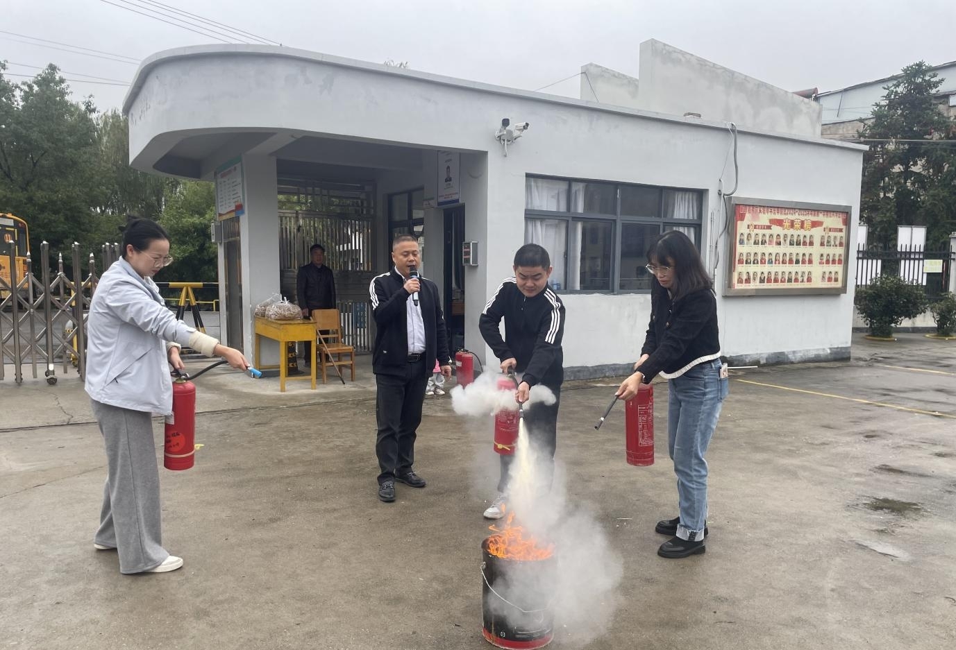 随后,现场执行组演示灭火器 “提、拔、握、压” 操作,师生代表实操巩固技能。演练尾声,总指挥总结亮点、明确改进方向,完善应急预案。