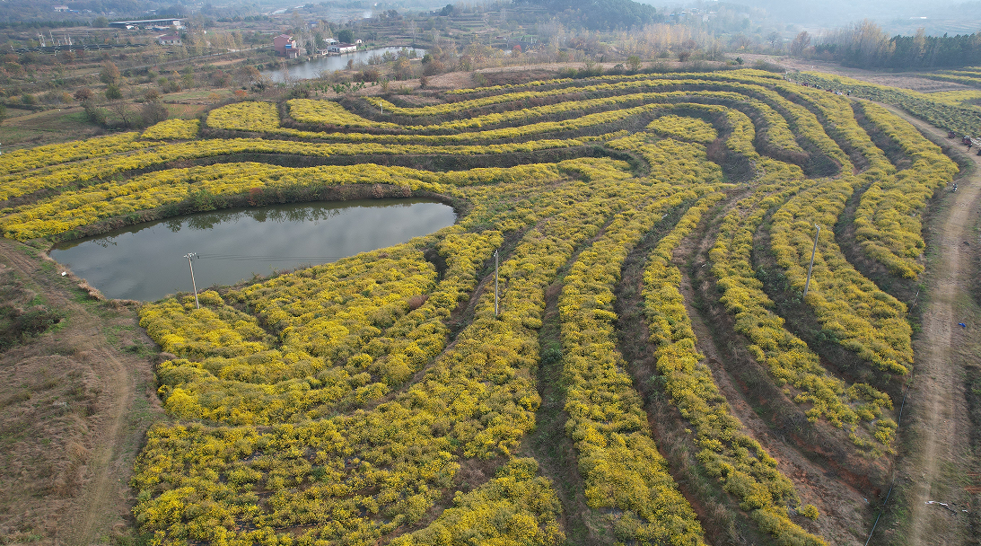 目前,红安县野菊花种植面积和产量均位居全国县市首位,年产值突破1.2亿元。一朵小菊花,真正撬动了一个大产业。
