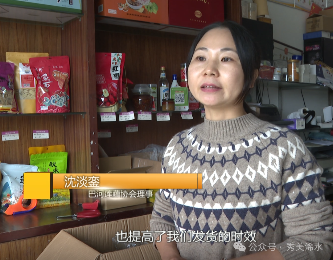 巴河莲藕协会理事 沈淡銮:快递进村之后,大大降低了物流成本,也提高了我们发货的时效,当天采挖出来的莲藕,当天就能发走。高峰期的时候,每天可以发货近1000单。