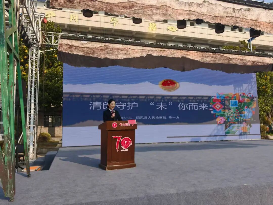 为筑牢未成年人法治安全防线,引导青少年树立正确法治观念,近日,湖北团风中学特邀团风县检察院检察官陈一方,以“清朗守护,‘未’你而来”为主题开展法治教育讲座。团风县人民检察院副检察长刘剑、检察官陈一方、团风中学校长王利平、副校长方坤参与此次活动。高一年级全体师生共同聆听此次讲座。政教主任陶灏主持活动。