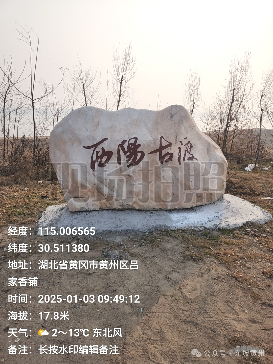 根据以上文章及历史资料记载,考察人员进行现场考证并研讨、分析、认定:西阳古渡故址位于黄州区陶店乡孙镇村巴河渡口处(经度:115.006558 纬度:30.511374 海拔:6.6米)的周边。