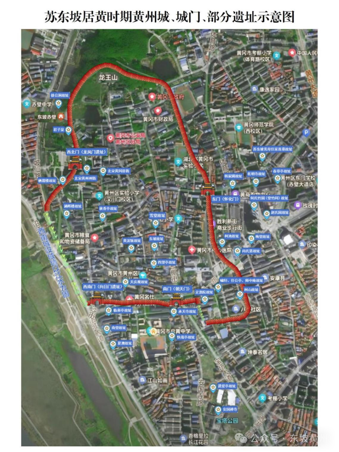 考证:苏东坡在《日日出东门》诗中说:“日日出东门,步寻东城游。城门抱关卒,笑我此何求。我亦无所求,驾言写我忧。意适忽忘返,路穷乃归休。悬知百岁后,父老说故侯。古来贤达人,此路谁不由。百年寓华屋,千载归山丘。何事羊公子,不肯过西州。”苏东坡又在《记游定惠院》文章中说:“晚乃步出城东,鬻大木盆,意者谓可以注清泉,瀹瓜李。遂夤缘小沟,入何氏、韩氏竹园。时何氏方作堂竹间,既辟地矣,遂置酒竹阴下。有刘唐年主簿者,馈油煎饵,其名为甚酥,味极美。客尚欲饮,而予忽兴尽,乃径归。道过何氏小圃,乞其丛橘,移种雪堂之西。坐客徐君得之将适闽中,以后会未可期,请予记之,为异日拊掌。时参寥独不饮,以枣汤代之。”南宋人王十朋注说:“《东坡图》云:东门,近东坡之门也,在乾明寺前五十步,今无矣。”南宋人王象之在《舆地纪胜》黄州“古迹”下记述说:“赵龙图忠显庙,在城东怀化门外。”在明清时代的《黄州府志》与《黄冈县志》的城图上,赵龙图忠显庙皆标画在黄州城东门外,这与王象之的记述契合。这也进一步表明了黄州城的东门自宋至清没有发生任何变化。