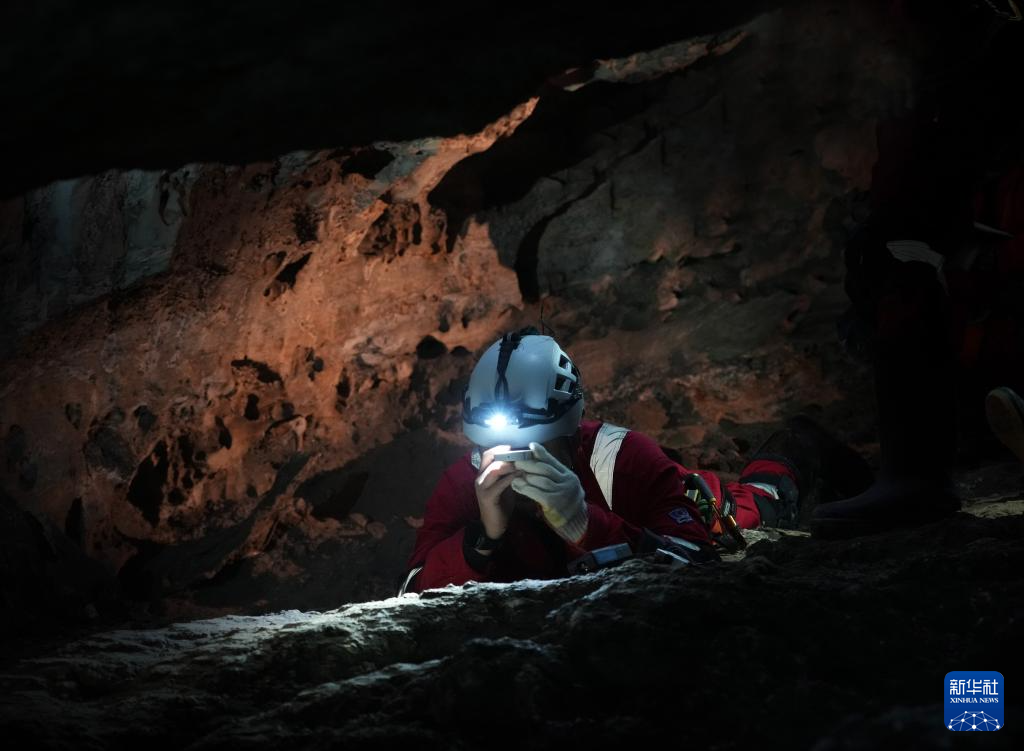2025年12月,航天员在进行洞穴测绘训练。新华社发