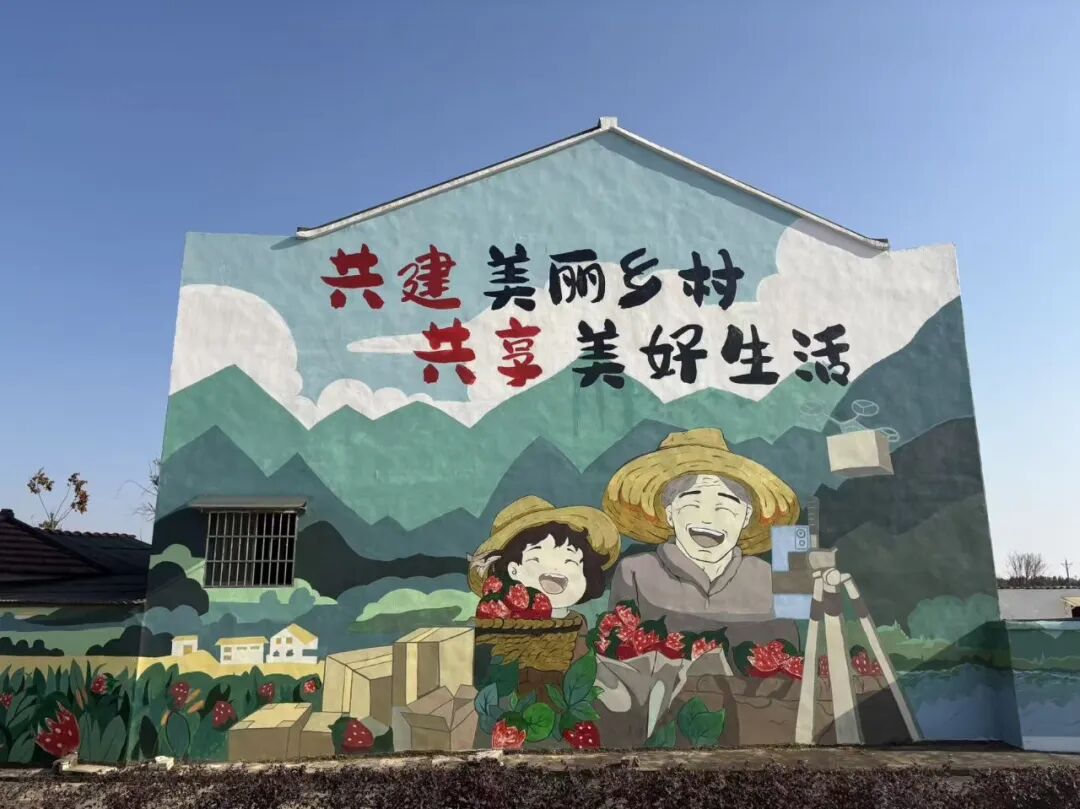 墙面彩绘上“共建美丽乡村,共享美好生活”