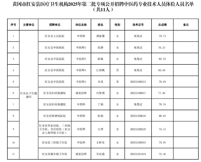 11人!红安公开招聘体检、考察公告