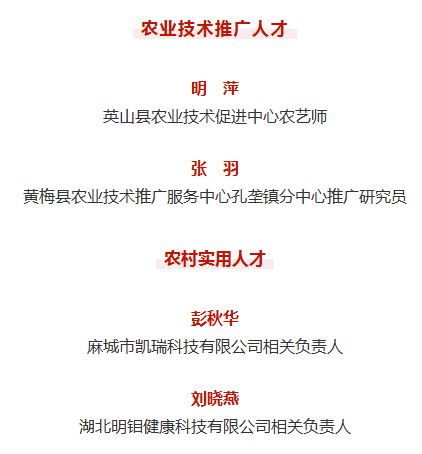 日前,省委人才工作领导小组办公室、省农业农村厅公布2025年度湖北省“楚天英才计划”乡村振兴人才项目入选名单。黄冈4人上榜 。