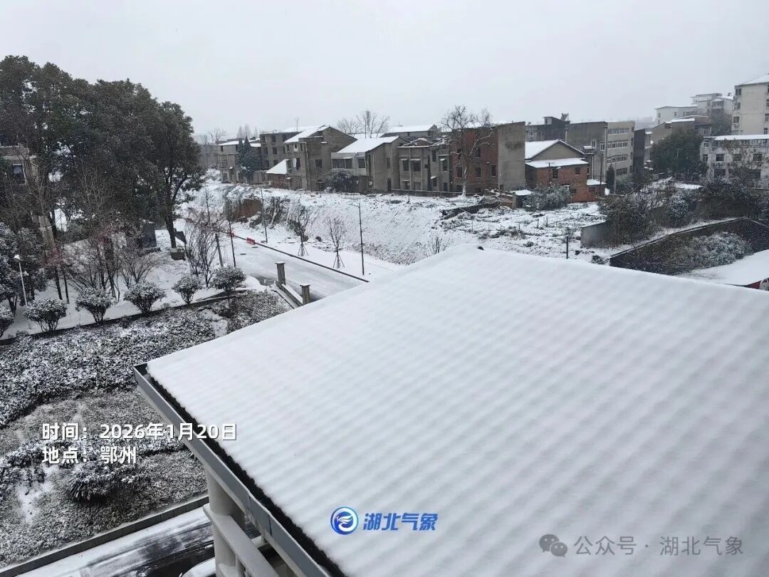 1月20日08时-21日08时,江汉平原、鄂东南、鄂东北南部阴天有小到中雪,局地大雪;鄂西北南部、鄂西南阴天有小雪;其他地区零星小雪转阴天。最高气温恩施地区1~3℃、其他地区-2~1℃,最低气温恩施地区-2~1℃、其他地区-6~-2℃,偏北风3到4级、阵风5到7级。