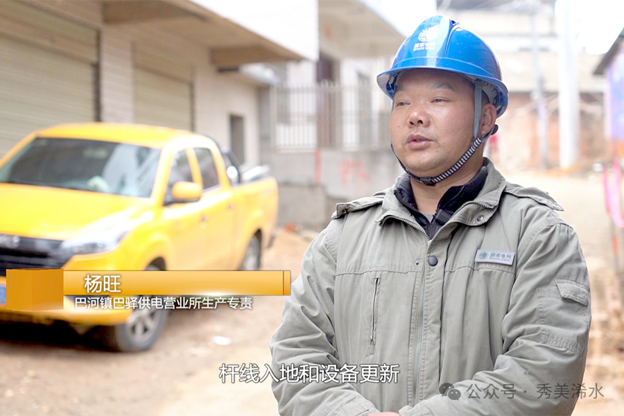 巴河镇巴驿供电营业所生产专责 杨旺:我们正在争分夺秒进行杆线入地和设备更新。分组进行组立电杆,展放导线,必须在春节前,让老街家家户户都用上安心电、稳定电。