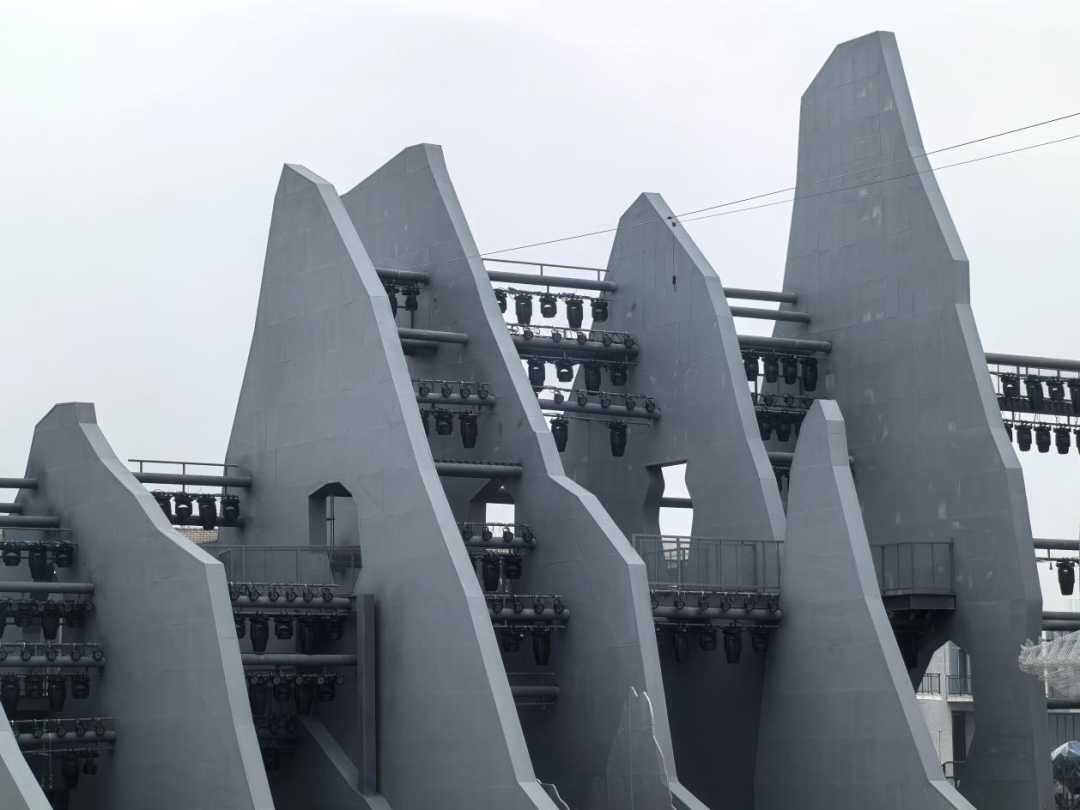 真正的震撼,来自舞台。2000平方米的实景舞台,以遗爱湖的粼粼波光为底色。高达20米的“山形”钢结构巍然屹立,环形水幕与前沿投影技术交织,让苏轼笔下“乱石穿空,惊涛拍岸”的壮阔山河,从文字中奔涌而出,成为眼前可触可感的真实景象。