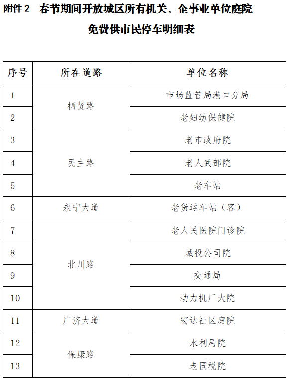 为有效缓解春节期间武穴市城区停车压力,减少交通堵塞、保障道路畅通,降低群众节日出行成本,提升城市节日期间宜居品质与群众获得感。2026年春节期间,武穴市免费开放城区机关企事业单位及部分临时停车场。
