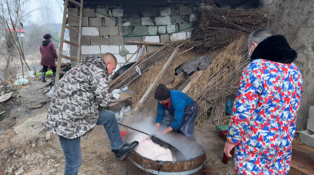 眼看马年春节越来越近,一家人商量后,决定请专业屠夫宰杀3头土猪,分给邻里、囤足年货。消息一传开,左邻右舍便主动赶来帮忙,查家的小院瞬间被热闹填满——男女老少齐上阵,搬家伙、烧热水、递工具,欢声笑语混着柴火的噼啪声,成了蕲北农村过年最动人的背景音。