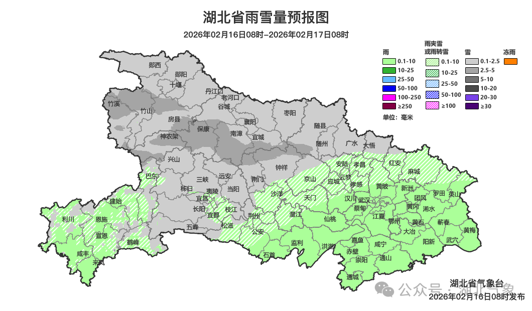 预报来源:湖北省气象台2026年2月16日08时预报