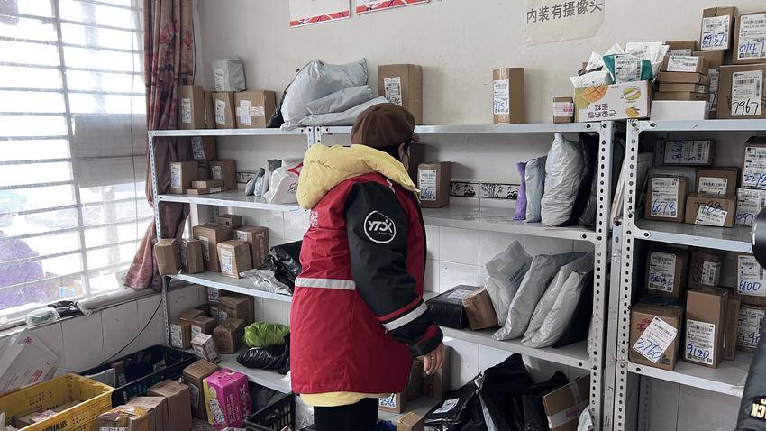 临近中午,圆通速递路口镇中庙街店门口,店长周丽正弯腰整理刚到的一批包裹。店面不大,货架、地面几乎被各色快件铺满,过道只剩下一脚宽。“过年货比平时多了三四成,水果、礼包、生活用品最多。”周丽的手机响个不停,有居民打电话来问下午能否取件。她说,初一到初五营业时间为上午十点到下午结束,但只要有预约,下午也随时开门。