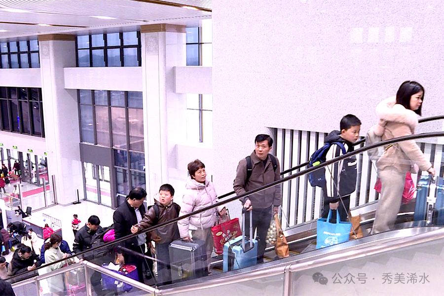 候车大厅内,返岗人员提着行李箱,在闸机口前有序通行。浠水南站开辟专用安检通道和候车区域,确保大家顺畅出行。人群中,手机提示音与交谈声交织,大家眼里闪烁着对新一年的期待。