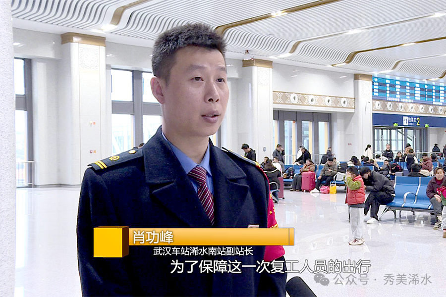 武汉车站浠水南站副站长 肖功峰:为了保障这一次复工人员的出行,浠水南站研究制定了相关的运输保障计划,开启了专用的安检通道,开辟了专用的候车区域,前期对接浠水县总工会了解人数,采取了集中管理集中上报,然后再用专用票额,去保障这一次咱们的出行,希望大家满意这次的服务。