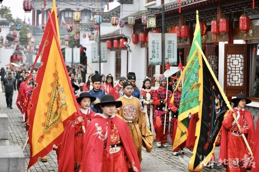 李时珍文化旅游区精心打造“非遗汉服国潮嘉年华”,从腊月廿四至正月初八推出三十余场特色活动,日间开展“马踏云瑶”大巡游、明代荆王仪仗展演、财神送福、实景小剧、抛绣球互动、猜药名赢“银票”等互动项目;夜间上演非遗火舞秀、篝火晚会等,点亮景区夜空,丰富游客夜间游览体验。