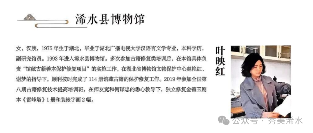 近日,浠水县博物馆古籍修复工作站传来捷报:叶映红同志入选国家级古籍修复师资质!
