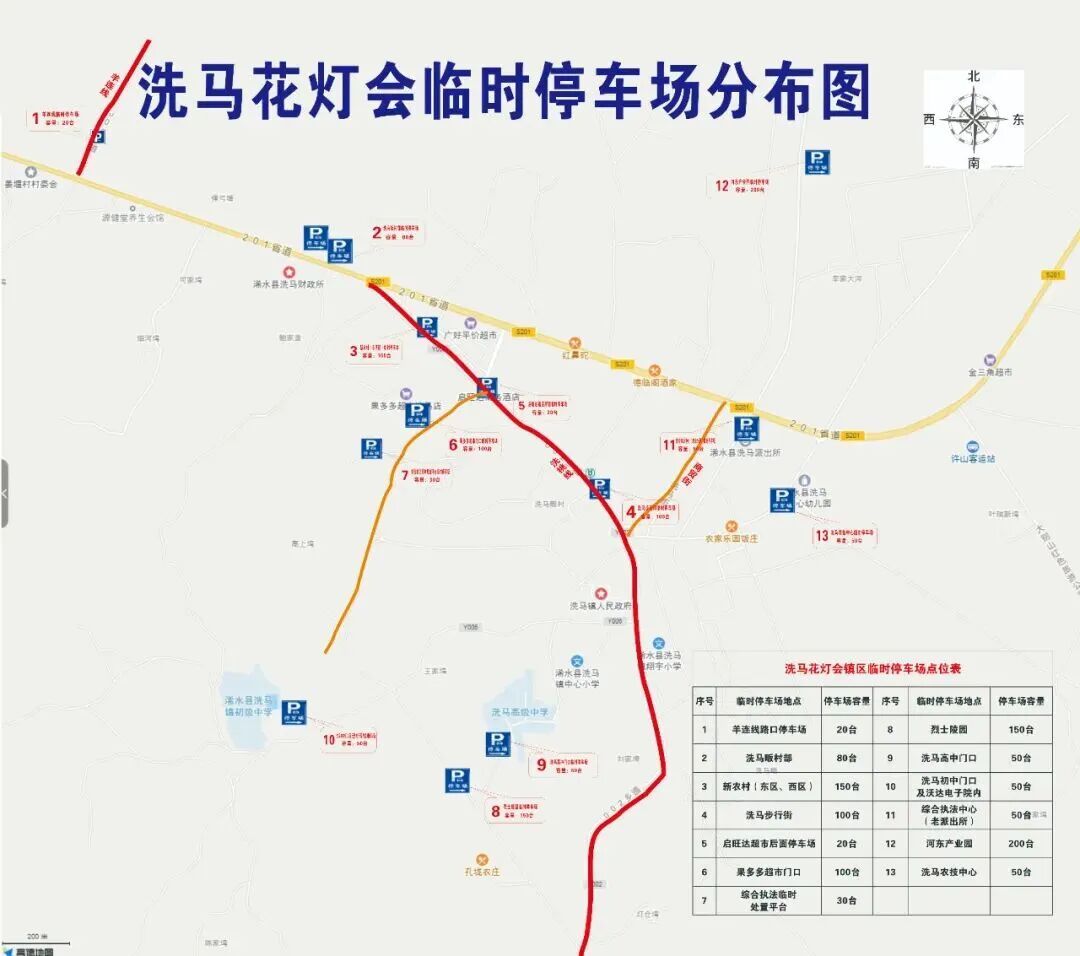 活动临时开通了洗马步行街、果多多超市、新农村等13个停车场,请驾车人员按照指引,到指定停车场有序停放车辆,违规停放的车辆一律拖移。