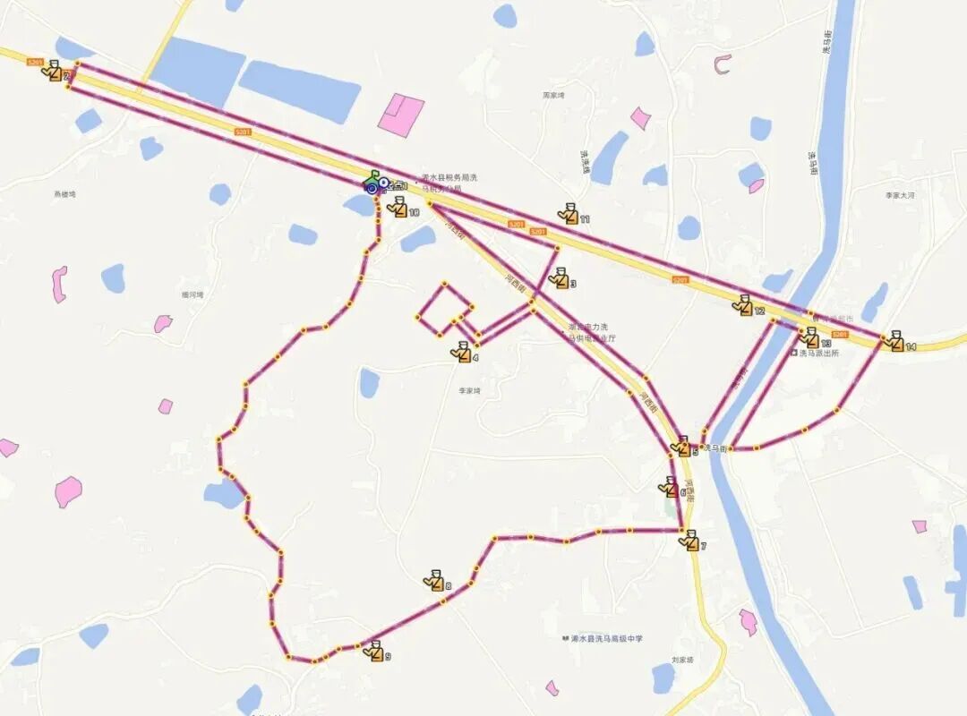 2.路线:在洗马加油站集中,洗马加油站(向西)→交通驿站(掉头)→河东小桥(右转)→河东街(右拐)→沿河路(左拐)→新大桥(左拐)→商贸街(右拐)→老街三岔路口(右拐)→白马广场(右拐)→吉安大道红绿灯(右拐)→吉安大道十字路口(直行)→果多多超市(掉头)→吉安大道十字路口(右拐)→老街三岔口(直行)→邮政路口(右拐)→学堂路(直行)→金谷路口(直行)→洗马初中(直行)→洗马加油站结束。