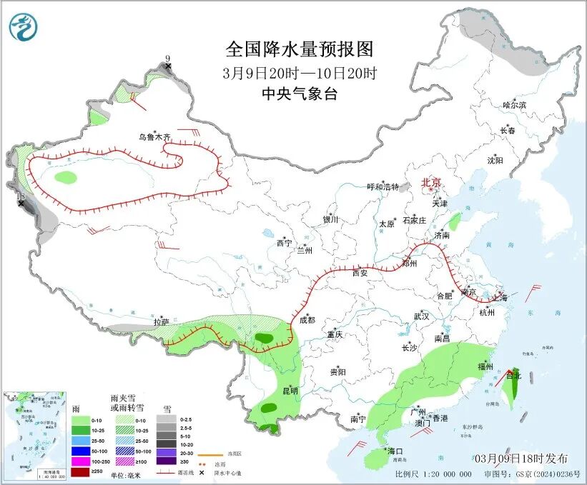 中央气象台预计,9日20时至10日20时,新疆阿勒泰山区和南疆西部山区等地部分地区有中到大雪,局地暴雪。川西高原南部、云南南部、台湾岛东部等地部分地区有中雨。