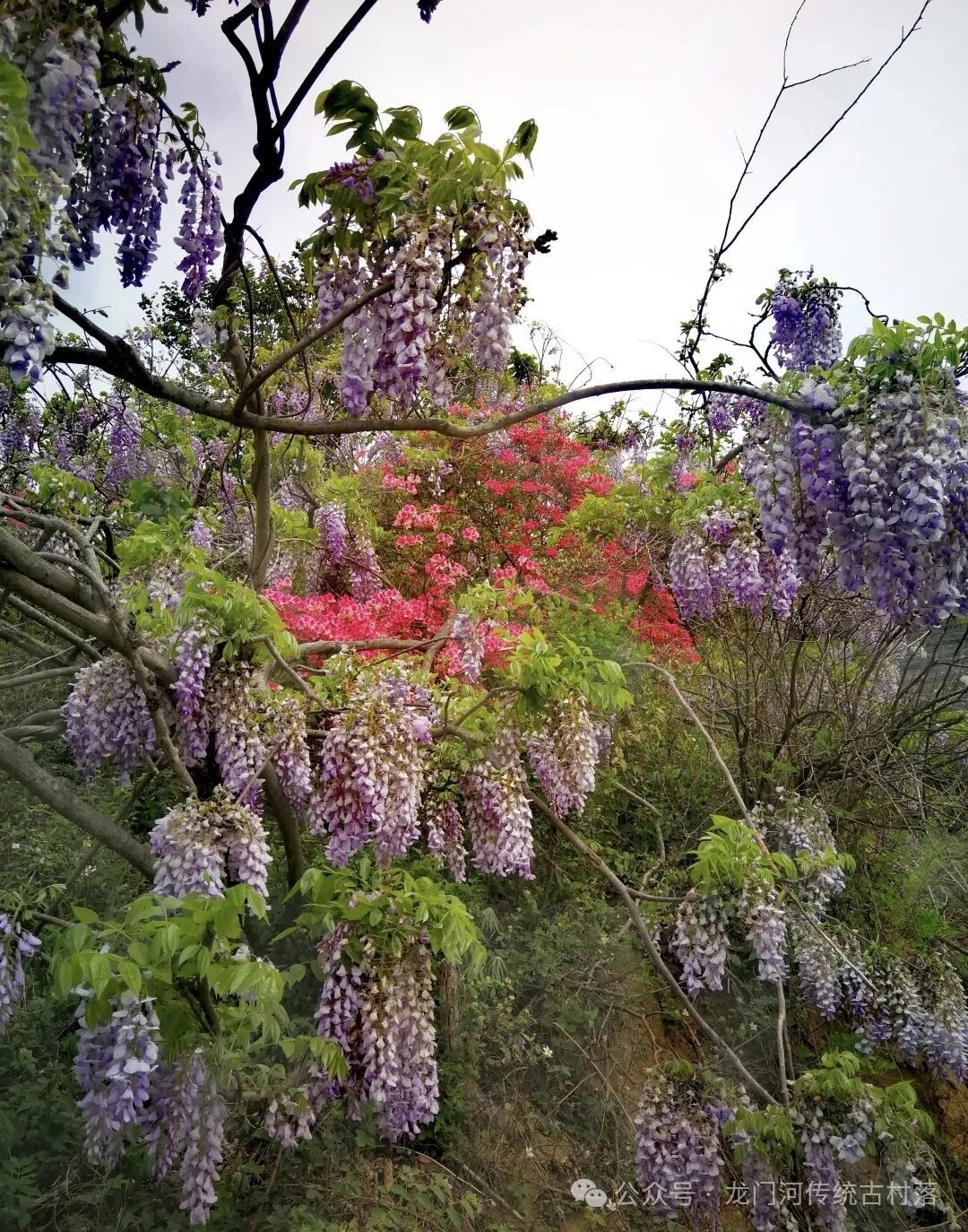 吊桥沟景区位于鄂豫皖三省交界的湖北麻城市木子店镇,景区内的紫藤花和杜鹃花交相辉映,绝无仅有的高山万紫千红画面,乃鄂东一绝,惊艳世人!