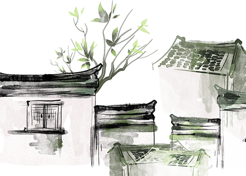入夏后,院墙下扁豆“碧叶青秧向上爬”,渐渐像一张张绿网披于院墙。油亮的叶子闪闪发光,院墙如同披盖一块绿色绸缎。接着,小院主人便在院上牵织绳索,形成网状,让藤蔓入网搭棚。藤蔓像一条条绿蛇一样爬上绳索,藤生蔓,蔓生藤,来来去去,缠缠绕绕,“枝枝盘作盖,叶叶暗遮旁”,不要多久,小院便变成绿棚小院。盛夏,阳光照射绿棚,人坐在绿棚下,披一身碎金,浑身感觉清爽爽、凉悠悠。