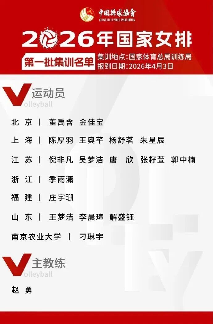 中国女排2026年首批集训名单2日正式出炉,球队的目标是夺取亚锦赛冠军,从而取得2028年洛杉矶奥运会的入场券。