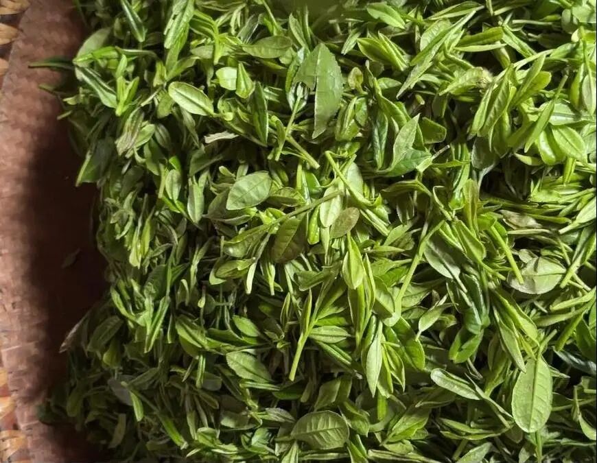 村民当天采摘回来的新鲜茶叶。 何涛 摄